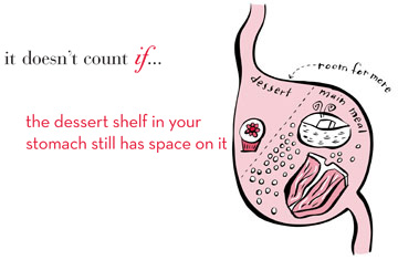 Since you’re probably still stuffed from all those delicious but waistline-expanding-holiday treats, and could most definitely use a break from cooking, we decided to skip a recipe this month. Instead, we thought we'd share a few of the 204 justifications you can use if you’ve cheated on your diet (and who hasn’t lately?) from It Doesn’t Count If...by Daisy Westmoor. After all, of course it doesn’t count if:
