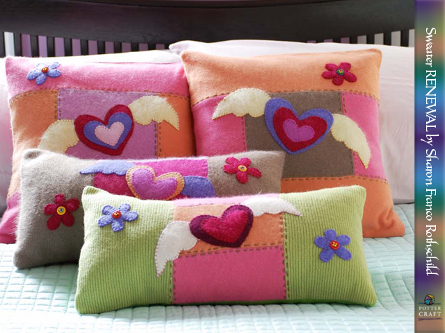 Sweater Renewal, the first Potter Craft title by Sharon Franco Rothschild, isn’t due in stores until August 19, but we have a sneak peek! Download the wallpaper today and get ready to start gathering your old sweaters, starting your washing machines, and sharpening your scissors …