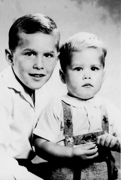 The brothers' sibling rivalry was not evident in 1955 when George W. Bush, nine, posed with his brother John Ellis "Jeb" Bush, two. Growing up, they competed ferociously in sports and later in politics for the approval of their absentee father.