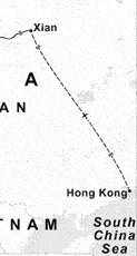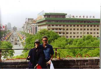 "Xian was the capital of the Tang Dynasty and the starting point of the great Buddhist monk, Hsuan Tsang's journey West. I arrived by air from Hong Kong nervous that my Hong Kong tourist visa would get me stopped at immigration. But I got through. My then girlfriend (now my wife) Zhongmei Li met me at the airport and we spent a couple of days taking in the sights and getting ready for our own trip west. Here we are in a tourist pose atop the ancient Ming Dynasty Wall that still stands around the old imperial city--though the wall you see wasn't built until about 800 years after Hsuan Tsang's era."