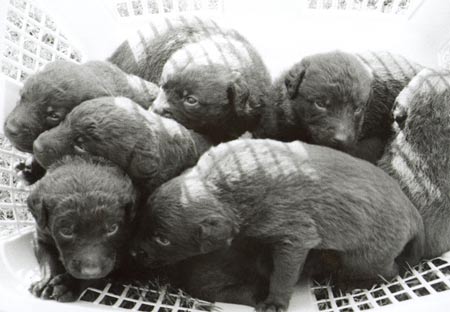 Here's the puppies. They were born under my desk, during the time I was writing "Dogwalker".