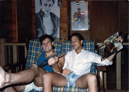 3. Greg Spitz playing some wicked air-guitar as I pontificate on my then favorite record, Hard Promises by Tom Petty. From the look on our faces I can tell we are listening to The Waiting. My mom called those shorts obscene.