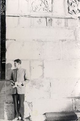 JM with his Greek friend Maria Mitsotakis, "the muse of my off days," Athens, early 1960s. Merrill's face is bound as a result of Bell's Palsy, an episode recounted in his poem "The Thousand and Second Night."