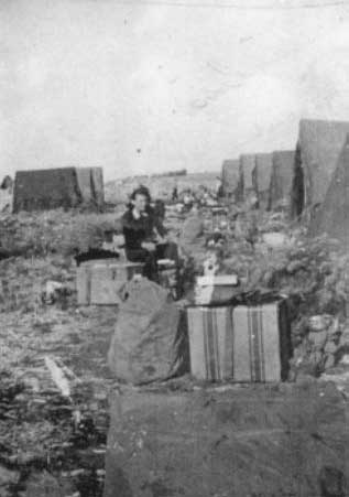 2. Lt. Helen Molony waits with her belongings for transportation that will move the 48th Surgical Hospital to a new site in Tunisia during the North Africa Campaign. View photo