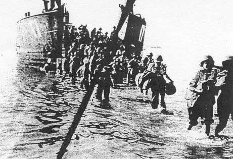 4. U.S. Army nurses of the 93rd Evacuation Hospital wade ashore on Sicily on 13 July 1943, D+4. View photo