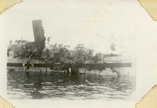 5. After being struck by a German bomb on 13 September 1943, HMHS Newfoundland is adrift off the coast of Salerno, Italy. View photo