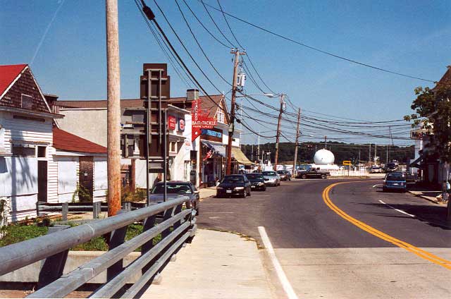 Town cove | Gas pump on the dock | Town | A restaurant on the cove