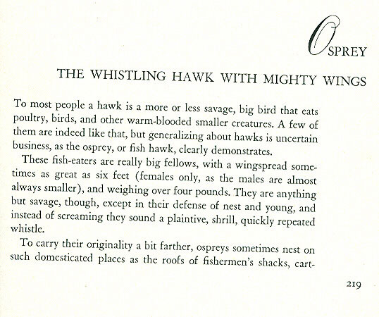 osprey was misnamed and had to do with certain old myths. Then, as a lover of