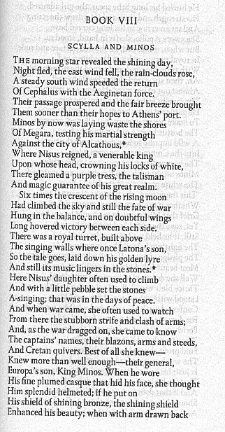 --(A.D. Melville, trans., "Scylla and Minos," Ovid's Metamorphoses, Oxford University Press, Oxford, 1986.)