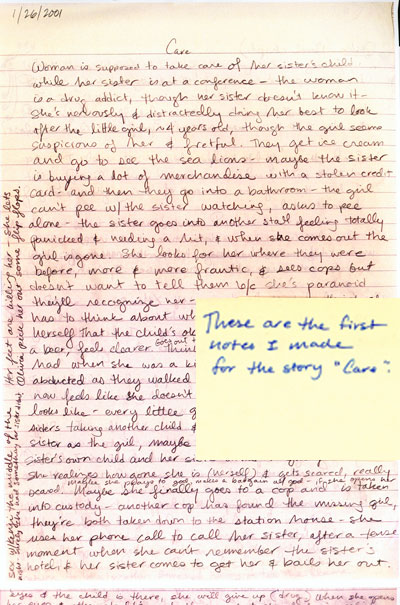 "Care," another story Julie worked on while at Stegner is also in the collection in a form very similar to these notes.