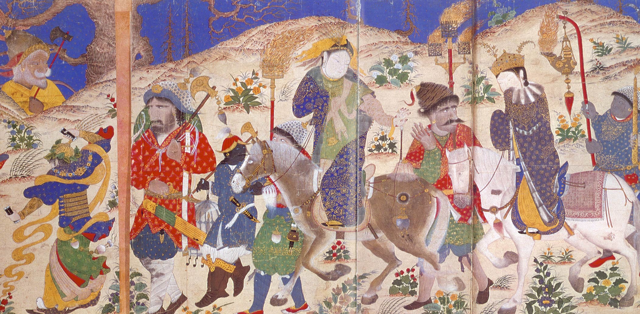 "If you ask me, this is a melancholy bride," I said, mournfully. "She's mounted on a gray horse with its nostrils cut open, she's on her way to be wed, with her companions and an escort of guards who are strangers to her. The faces of the guards, their harsh expressions, intimidating black beards, furrowed eyebrows, long thick mustaches, heavy frames, robes of simple thin cloth, thin shoes, headdresses of bear fur, their battle-axes and scimitars indicate that they belong to the White sheep Terkmen of Transoxiana. Perhaps the pretty bride--who appears to be on a long journey to judge by the fact she's traveling with her bridesmaid at night by the light of oil lamps and torches--is a melancholy Christian princess."