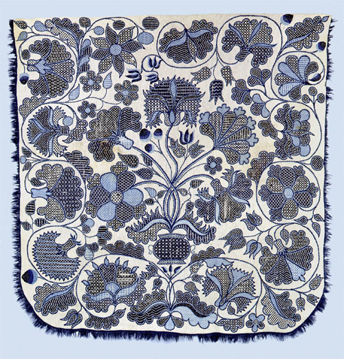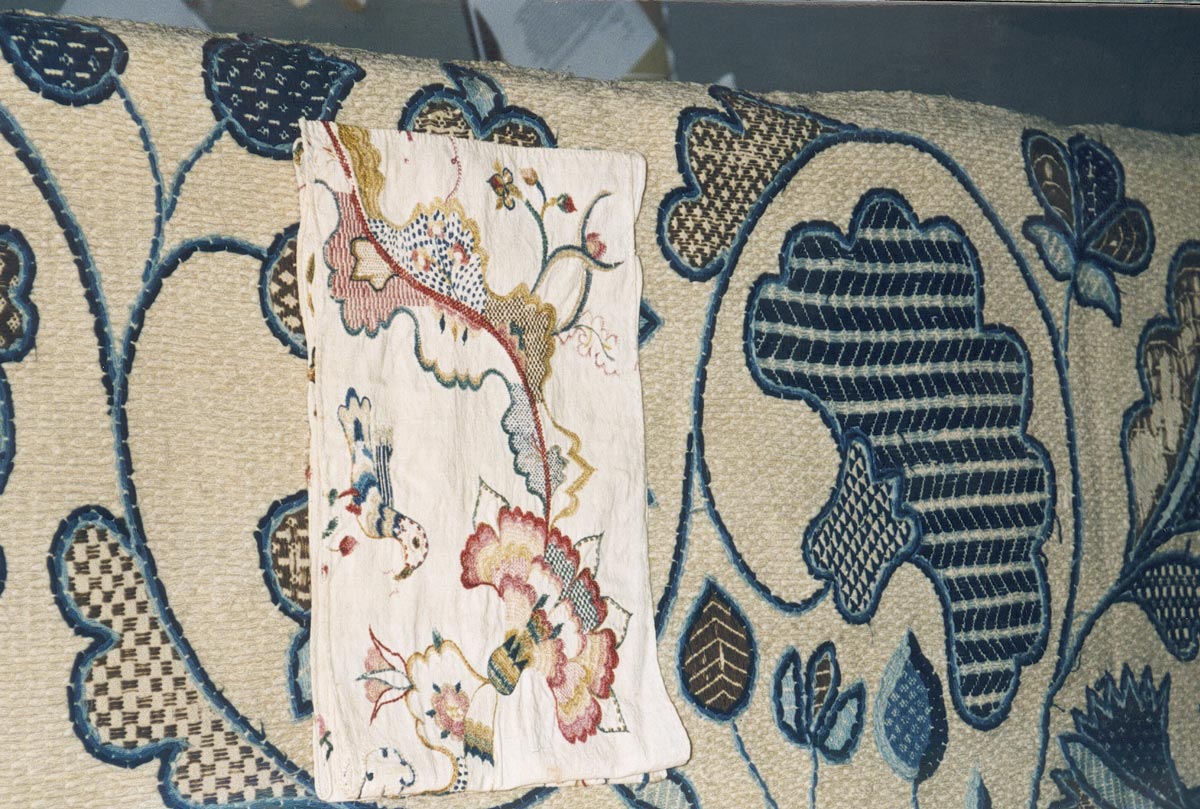 Detail of "E.F." bedrug and Prudence Geer Punderson bed valance.