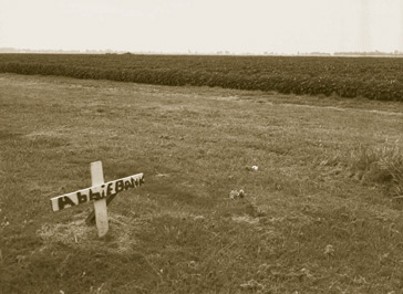 SY -- Actually, I had thought the cross might mark the grave of a black woman, because it looks like so many scarcely acknowledged graves in the Delta. The thing that threw me was the sign, which looked as if it had been very recently painted. The great bluesman Charley Patton was buried in just this kind of place, not far from my house. Until John Fogerty went to the Delta looking for Patton's grave, almost nobody knew where it was. Fogerty played a very moving concert in the graveyard at a ceremony to dedicate a memorial to Patton. Patton's fate, for almost fifty years, was worse than Abbie Bank's. Someone cared enough about her memory to erect this crude marker. It took another bluesman--one from California--to go to Indianola and pay homage to Patton.