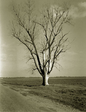 MSC -- This tree has withstood lightening, the road being moved, tornados, I even recently saw a gang of children banging toy trucks and crashing bicycles against its trunk. It just seems to have a spiritual aura that is indestructible. It is a stoic monument to the changes that have occurred around it . Perhaps it represents the very nature of change itself..