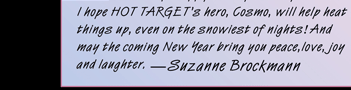 Read an excerpt from Hot Target Get your copy of Hot Target signed by the author and be automatically entered to WIN a limited edition of Ladies' Man (estimated value $1000)- visit www.SuzanneBrockmann.com for more details about this virtual signing. |