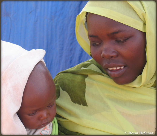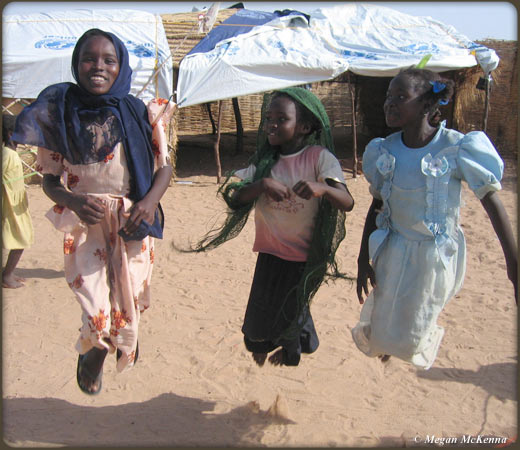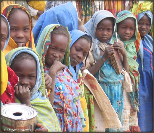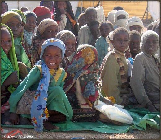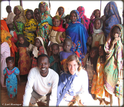 Daoud, Megan and a group a refugees at camp in Eastern Chad