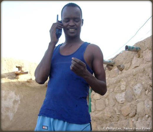 Daoud talking to one of his many contacts on a satellite phone in Darfur